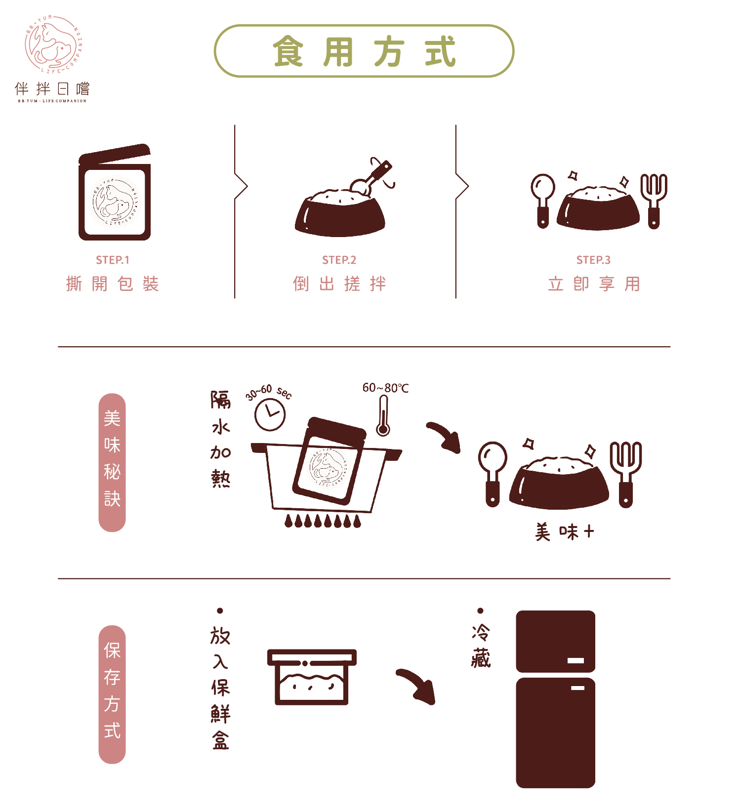 食用方式 : 撕開包即可食用,也可拌入鮮食一同食用。