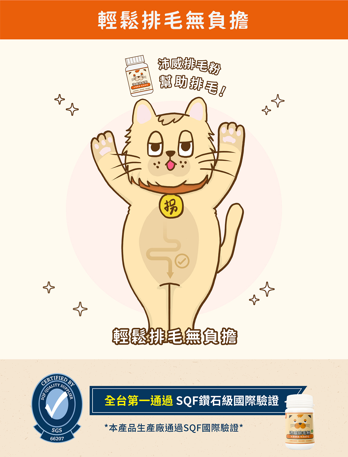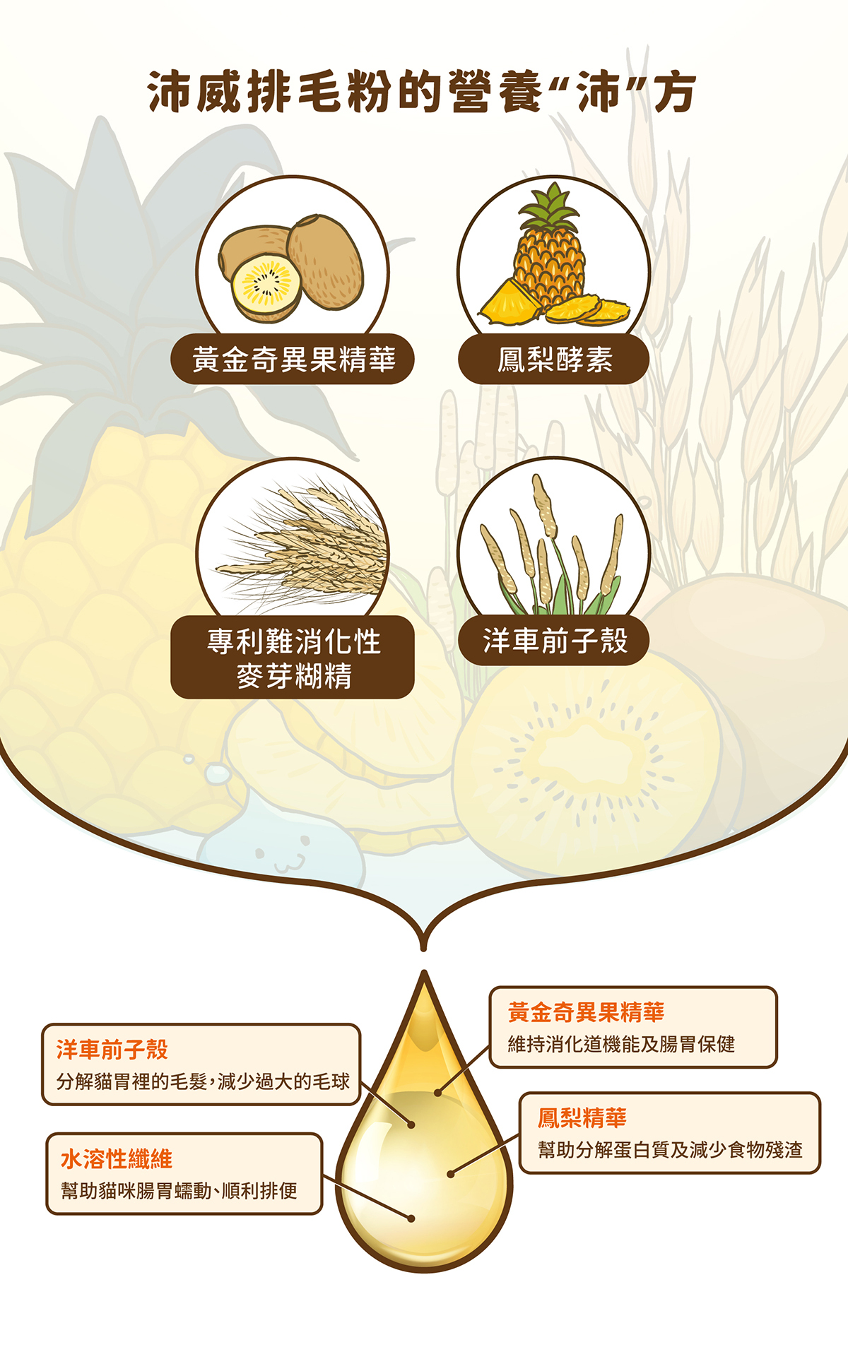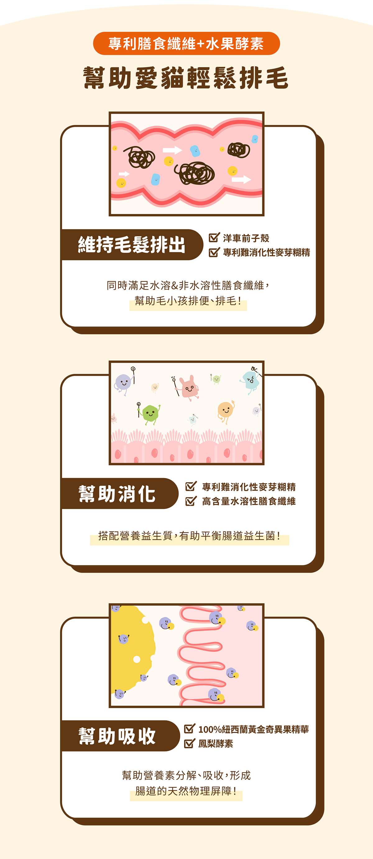 🐈毛排出:洋車前子殼+專利難消化性麥芽湖精