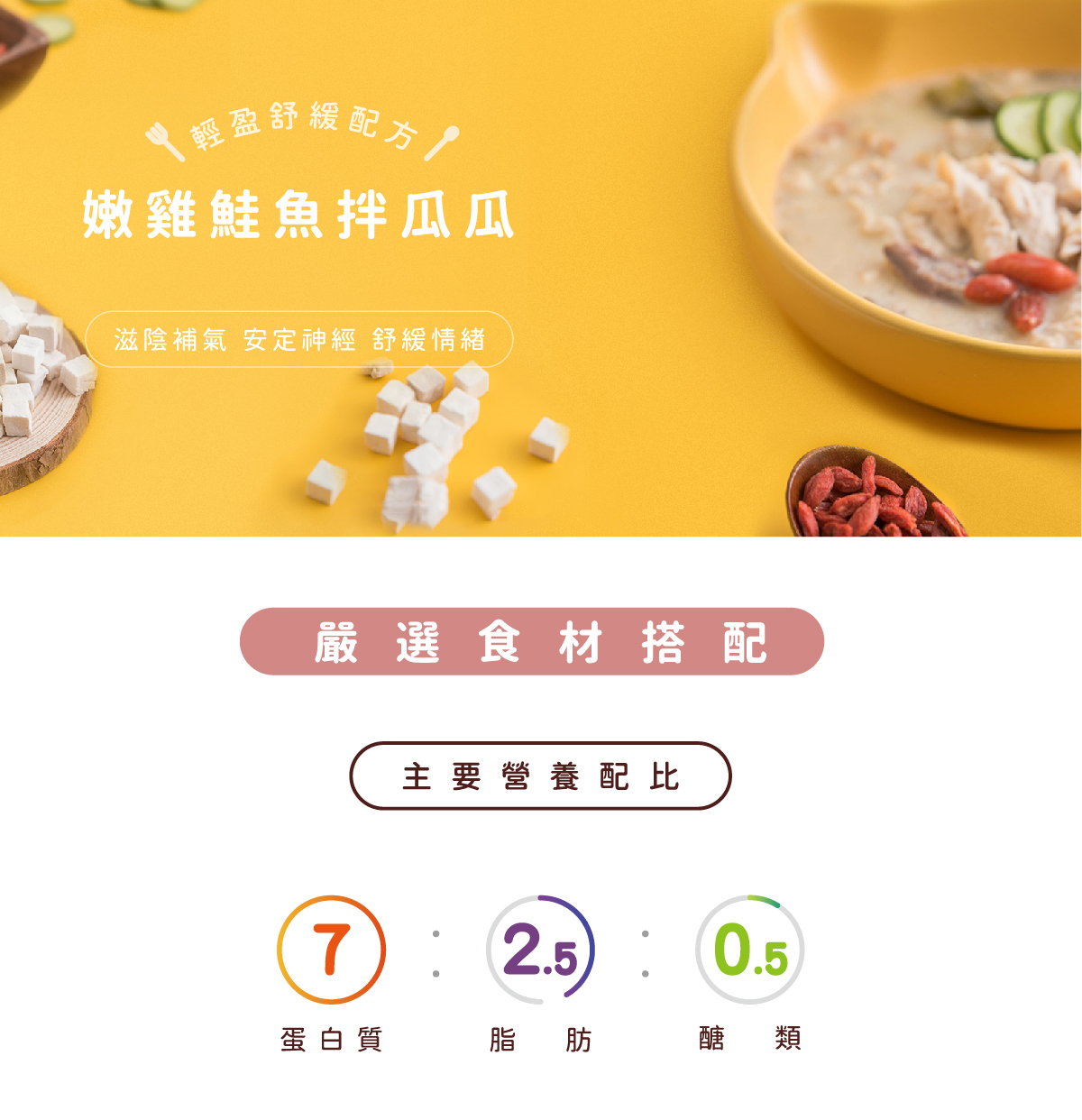 貓咪鮮食(輕盈舒緩) 嫩雞鮭魚拌瓜瓜 120g